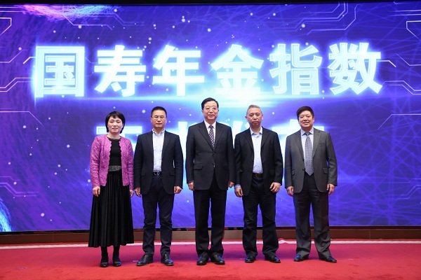 随后,唐霁松局长、曹德云副会长和袁长清董事长、崔勇总裁、白平副总裁共同按下手印,“国寿年金指数”正式发布。